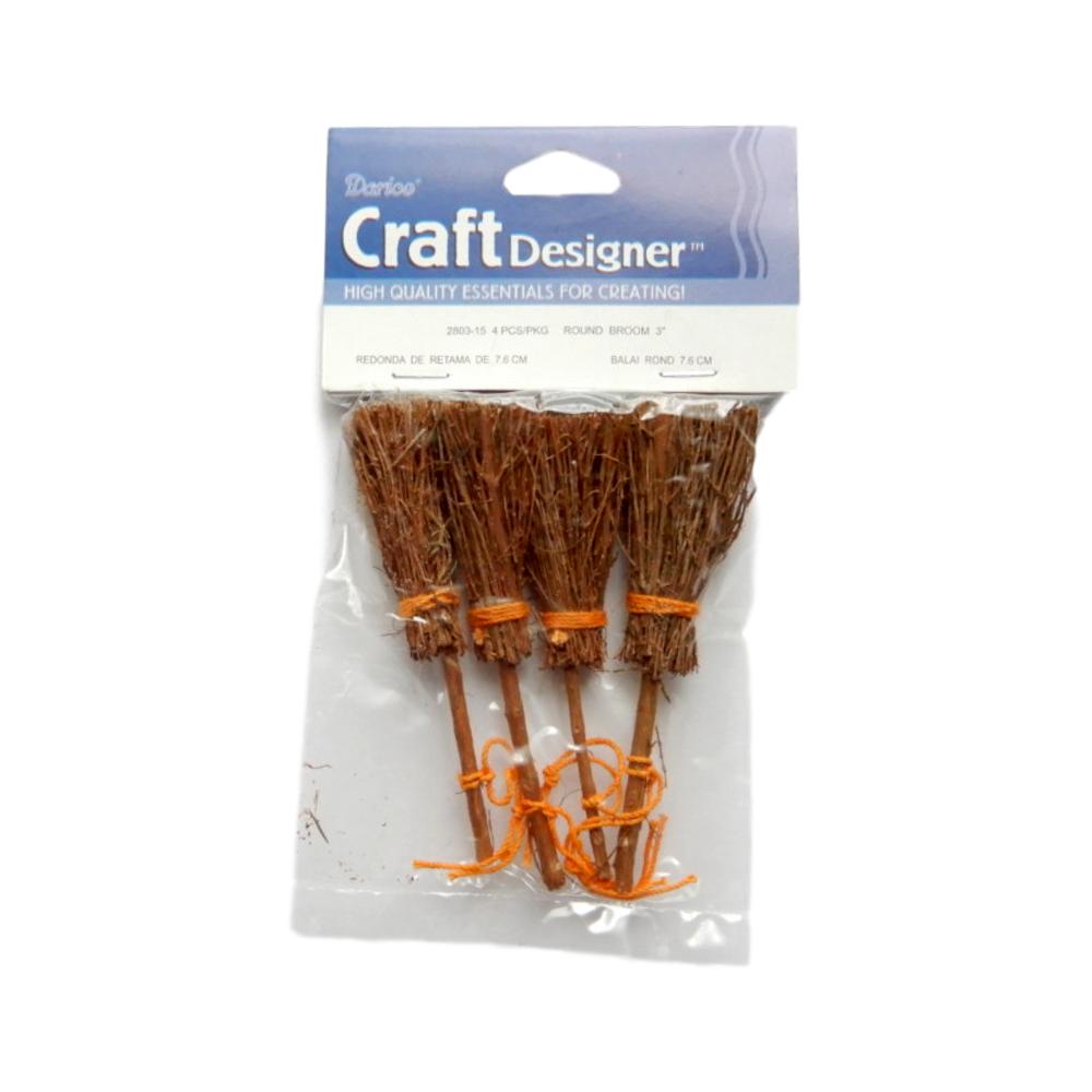Balai de sorcière rond - 7,5 cm - Nature (brun foncé) - Sachet 4 pièces