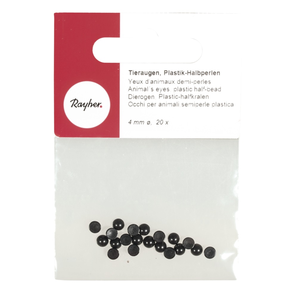 Yeux d'animaux en plastique - Demi perles - A coller - 4 mm - Noir - 20 pièces - Rayher
