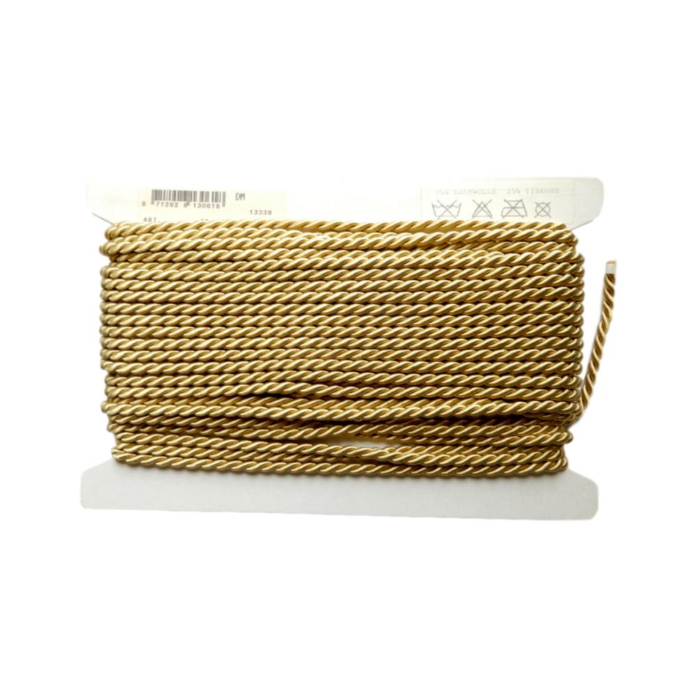 Cordon torsadé - 75 % coton, 25% viscose - 7 mm - Vieil or - Carte 25 mètres